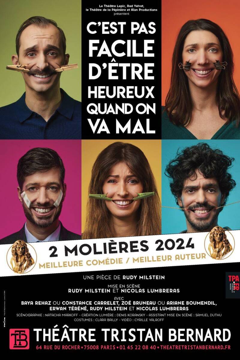Le titre et le pitch du spectacle étaient prometteurs et le fait qu'il ait été récompensée par deux Molières (meilleure comédie et meilleur auteur) l'an dernier m'a poussé à dépasser mes à prioris sur les comédies. Quelle bonne idée! J'ai trouvé l'écriture excellente avec, comble du bonheur pour moi, une petite pointe d'humour noir bien sentie. Les personnages, névrosés et caricaturaux à souhait, sont au mieux agaçants, au pire odieux. On peut donc les détester sans aucun remords et c'est un vrai exutoire. Mais pour jouer ce genre de personnages, il faut des comédiens à la hauteur. Le casting est parfait! Impossible pour moi d'en ressortir un du lot tant ils sont chacun brillants dans leur interprétation. Un immense bravo à eux et à l'auteur.